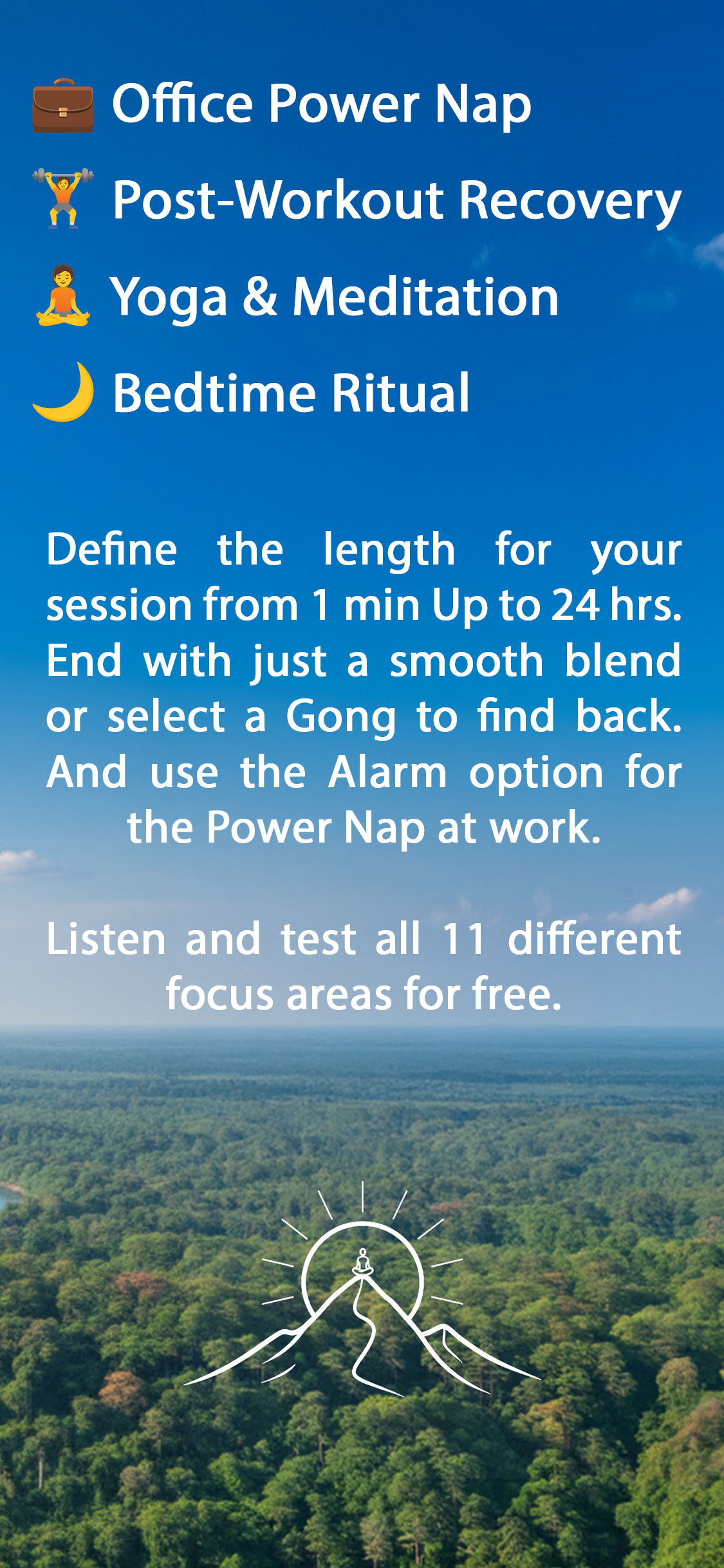 Discover specially composed music for meditation, yoga, massage, concentration and restful sleep. Each theme is carefully crafted and available with a single tap.
